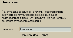 Далее программа потребует имя для учетной записи службы новостей. Наберите любое имя. Нажмите кнопку