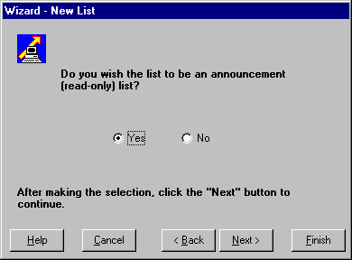 Ответьте на вопрос, хотите ли, чтобы никто, кроме модератора, не мог публиковать информацию в список рассылки. Ответ "Yes" будет означать, что никто кроме модератора не сможет публиковать информацию в списке рассылки.
