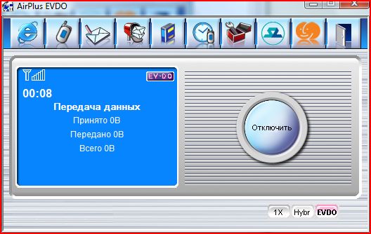 появятся надпись "Передача данных" и счетчик времени пребывания в сети.
