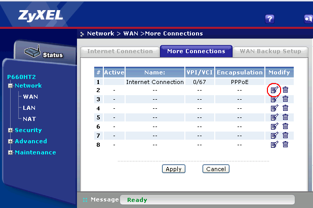 Выберите More Connections и нажмите на значок редактирования в столбце Modify.