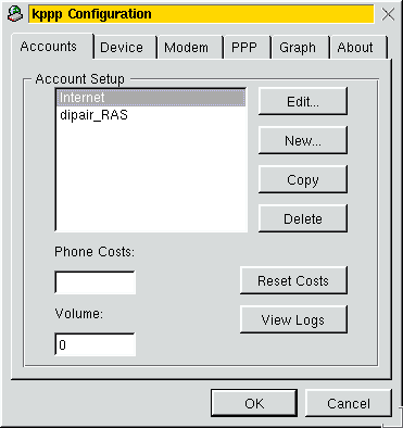 Рассмотрим вариант настройки доступа в Интернет из графической системы X Windows (оконный менеджер KDE).После запуска KDE щелкните на рабочем столе по значку "Internet".